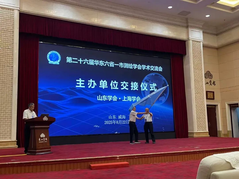 (山东省测绘学会与下一届承办单位上海市测绘学会举行了交接仪式)