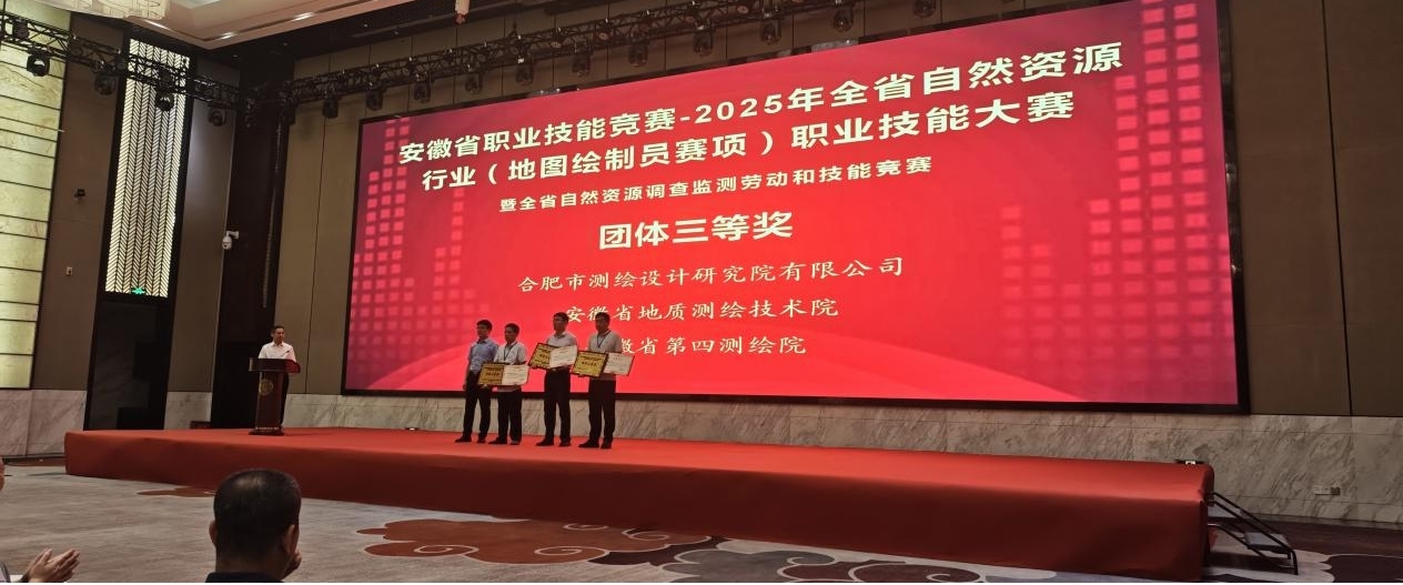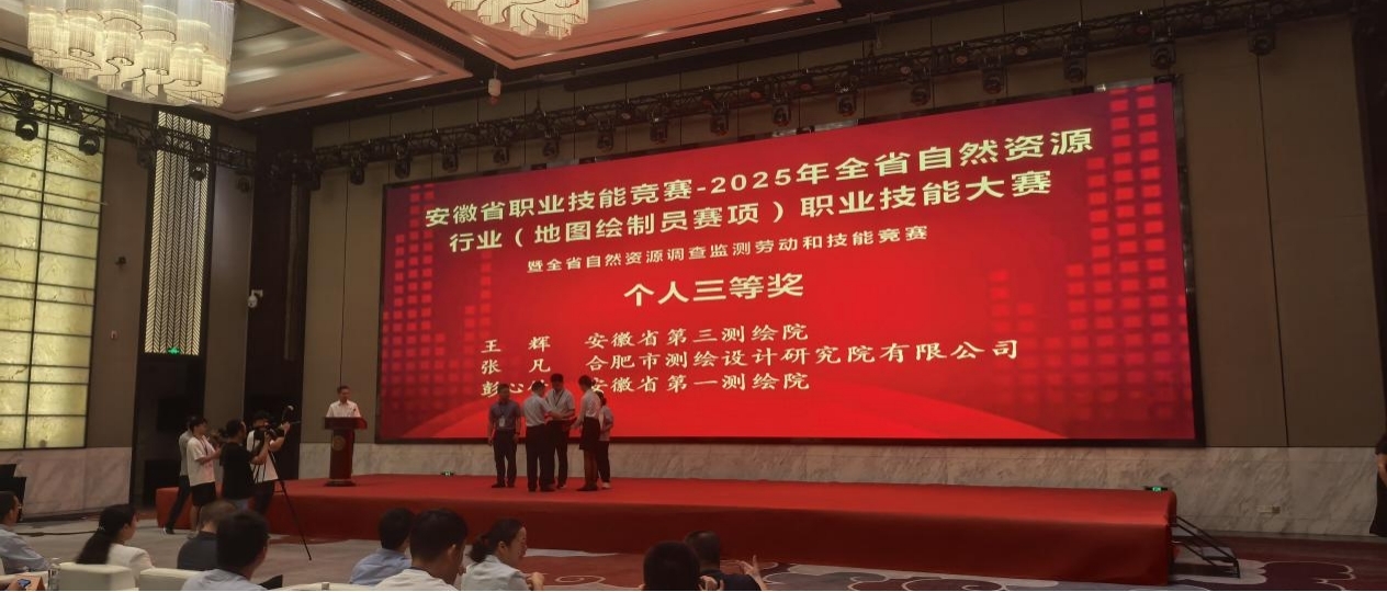 2024年8月29日,由安徽省自然资源厅联合安徽省人力资源和社会保障厅、安徽省总工会联合主办,安徽省测绘局承办的安徽省自然资源行业(地图绘制员赛项)职业技能大赛暨安徽省自然资源调查监测劳动和技能竞赛在合肥圆满闭幕,我司再次取得佳绩。