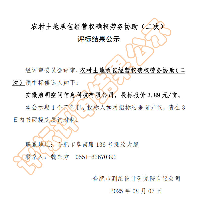 农村土地承包经营权确权劳务协助(二次) 评标结果公示